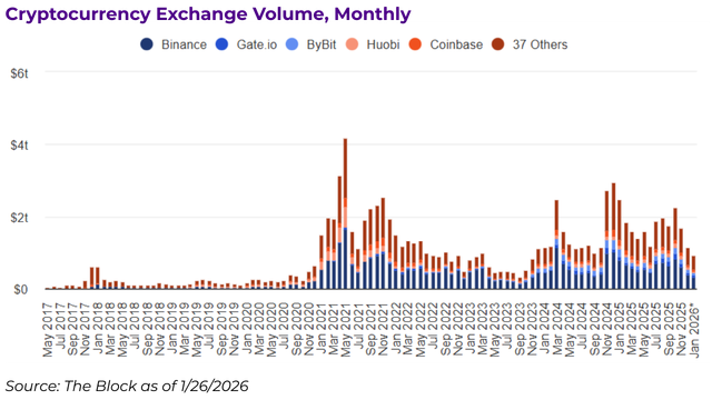 We have long argued that the introduction of spot ETFs fundamentally alters the role of crypto exchanges. As ETFs proliferate, exchanges increasingly resemble custodial and on-ramp infrastructure rather than primary venues for speculative trading.